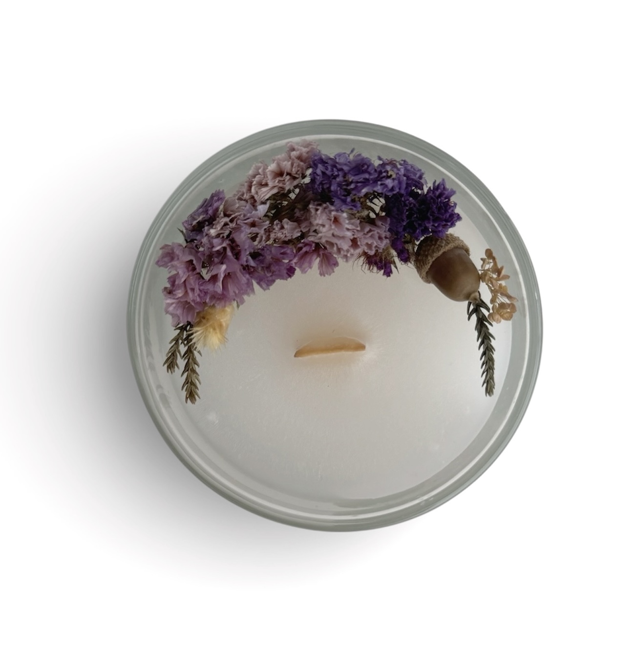 شمع لاوندر این شمع دارای تزئین گلهای زنبوری و لاوندر فیتیله چوبی و رایحه لاوندر زمان سوخت : ۱۸ ساعت (برای روشن کردن شمع گلها رو از روی اون بردارید)