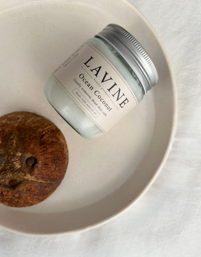 اسکراب دریا تشکیل شده از نمک دریا،روغن نارگیل،موم عسل،شی باتر و ویتامین E